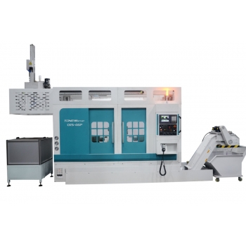 CKS斜床身系列雙主軸雙排刀數(shù)控車床是我公司針對(duì)短軸類和盤類零件進(jìn)行高效加工而研發(fā)的精密數(shù)控機(jī)床,改系列機(jī)床實(shí)現(xiàn)了第 一主軸裝夾,第二主軸對(duì)接,第 一主軸工序和第二主軸工序可同時(shí)工作,第 一主軸裝料時(shí)不影響第二主軸加工,第二主軸卸料時(shí)不影響第 一主軸加工,減少了一般零件靠人工調(diào)頭二次裝夾工序,提高了零件的加工精度和減少工件流轉(zhuǎn)磕碰傷及損耗,一機(jī)加工效率抵普通兩臺(tái)數(shù)控車床且能有效降低人工成本。